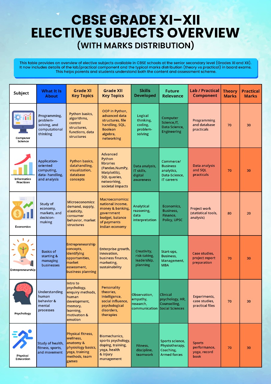 This choice, though sometimes underestimated, carries long-term significance. The elective can influence preparation for competitive exams such as JEE Main, JEE Advanced, NEET, KCET, BITSAT, IAT, UCEED, CLAT, and others, as well as impact undergraduate subject readiness.